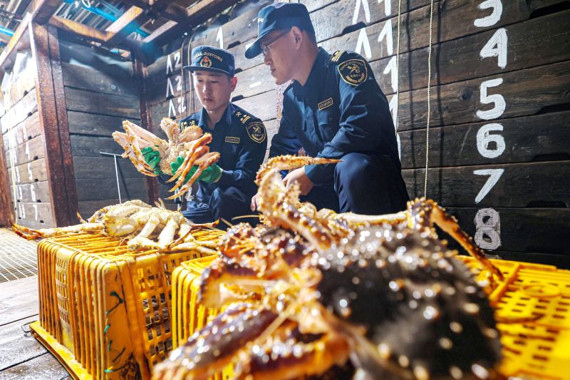 便捷的口岸通關(guān)環(huán)境給活蟹進(jìn)口提供了有力支撐,企業(yè)紛紛擴(kuò)大進(jìn)口規(guī)模滿足國(guó)內(nèi)消費(fèi)市場(chǎng)需求。據(jù)統(tǒng)計(jì),2025年前三季度,榮成海關(guān)共監(jiān)管進(jìn)口活帝王蟹、活雪蟹等食用水生動(dòng)物1.2萬(wàn)噸,同比增長(zhǎng)14.6%,貨值6.1億元,同比增長(zhǎng)9%。(趙驍、宋敬君/文)
