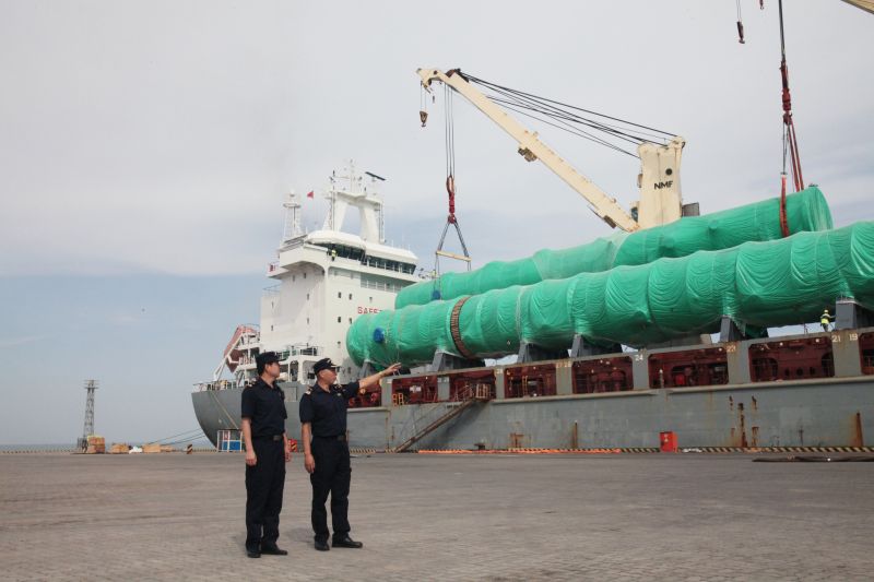 榮成海關(guān)駐石島港辦事處口岸監(jiān)管科科長滕海濱介紹:“我們協(xié)調(diào)港口企業(yè)劃定特定監(jiān)管區(qū)域,便利貨物安全存放及海關(guān)監(jiān)管。同時,為該批設(shè)備優(yōu)先辦理運輸船舶通關(guān)檢疫手續(xù),指導(dǎo)企業(yè)運用‘提前申報’‘抵港直裝’等便利措施,壓縮整體通關(guān)時間,確保設(shè)備能夠按時、順利出口?!保▽O偉航/文)